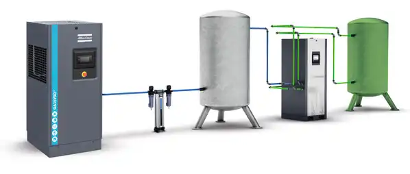 تستخدم مولدات النيتروجين NGP/NGP+ من Atlas Copco تقنية الامتزاز المتأرجح بالضغط لعزل جزيئات النيتروجين عن الجزيئات الأخرى في الهواء المضغوط. يتم امتصاص الأكسجين وثاني أكسيد الكربون وبخار الماء والغازات الأخرى. والنتيجة هي نيتروجين نقي تقريبًا عند مخرج المولد. تعد سلسلة NGP/NGP+ مصدرًا فعالاً للغاية من حيث التكلفة للنيتروجين المستخدم في العديد من الصناعات مثل الأغذية والمشروبات ومعالجة المعادن والإلكترونيات وغيرها الكثير.